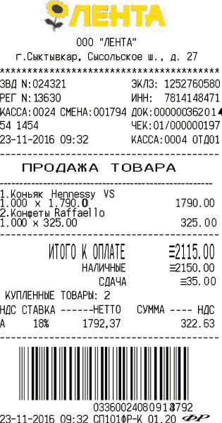 Кюар код - это двумерных штрихкод, в который можно закодировать любую информацию: текст, ссылки, номера телефонов и т.д. При помощи специального приложения, установленного на смартфон, можно увидеть, просканировав этот код на кассового чеке, где, в какое время, на какую сумму была совершена покупка. И если Вам требуется купить кассовый чек с кюар кодом в Казани срочно, то Вам необходимо обратиться именно к нам!