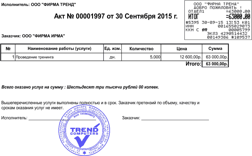 То в таком случае акт приема выполненных работ, купленный в Казани позволит вам дополнительно заработать, а лишних денег, как известно, не бывает.